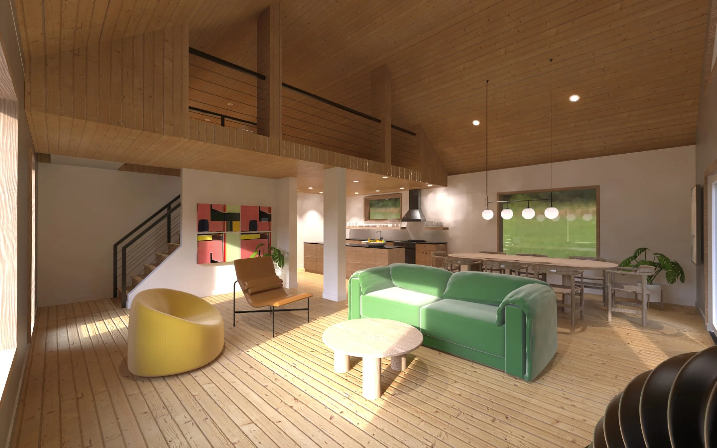 The Halcott House sits in the pristine mountain perch of the Catskills Mountains in Upstate NY. The site offers incredible views of the surrounding mountains with large windows offering framed views of the landscape. Warm woods and concrete brings an earthiness to the calm interior.